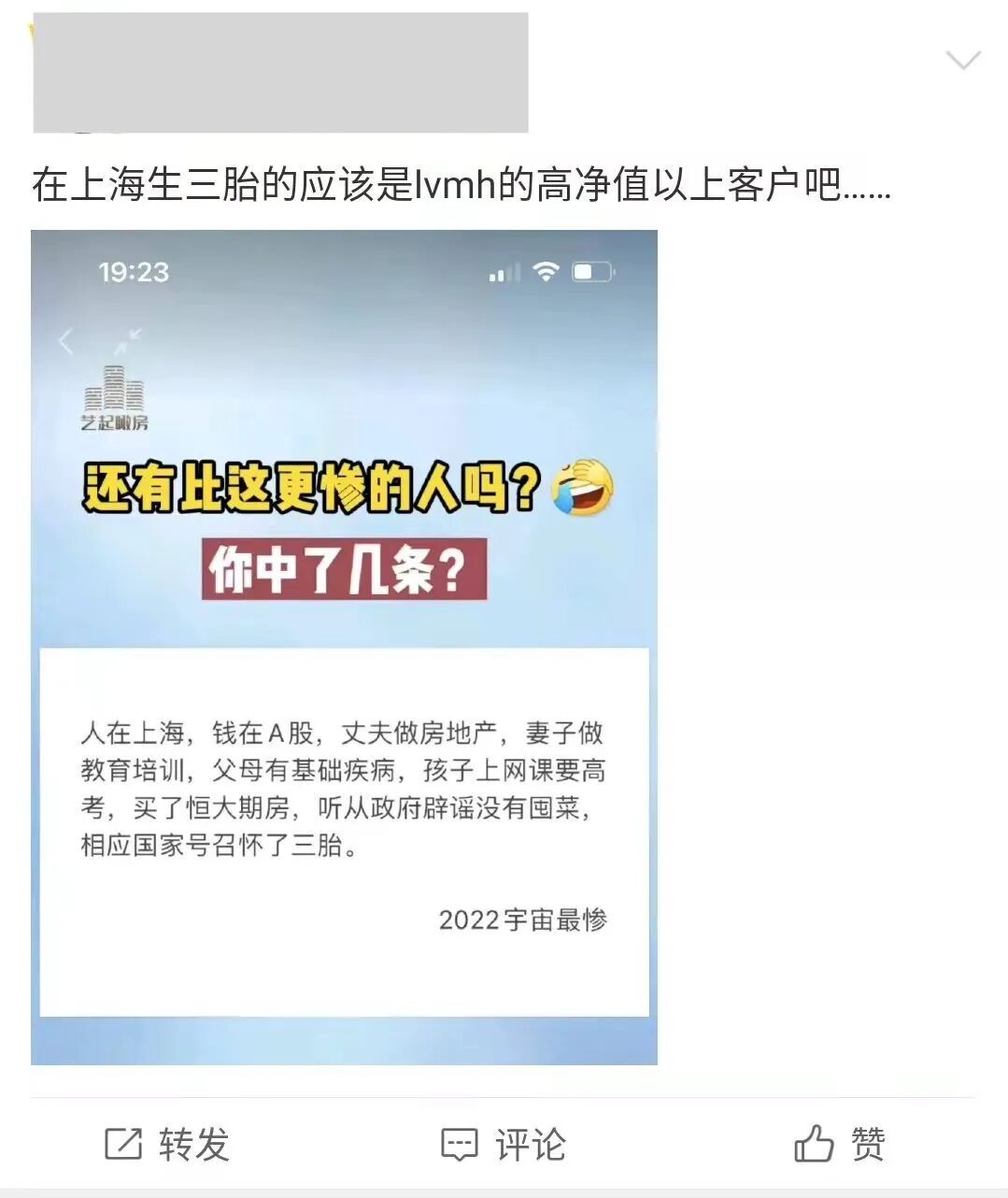 还有人顺应潮流讨论了一个“三娃”家庭该有的经济地位:
