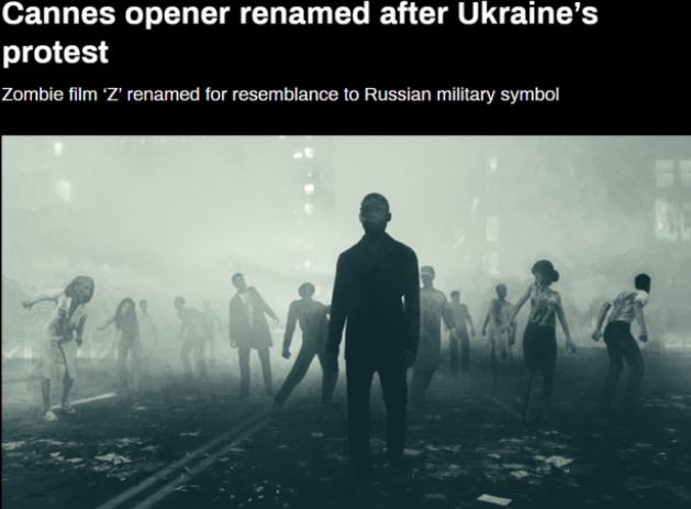 这似乎也彰显着,这届戛纳电影节,注定和俄乌战争纠缠在一起。事实上,在电影节开幕前,它就已经禁止了俄罗斯官方代表团出席,而法国电影导演米歇尔·阿札纳维西于斯(Michel Hazanavicius)也将自己的僵尸主题喜剧电影《Comme Z》重新命名为《Coupez!》,原因是乌克兰电影协会联系戛纳,认为电影原片名中的“Z”代表亲战符号,是对俄罗斯军队的支持。