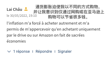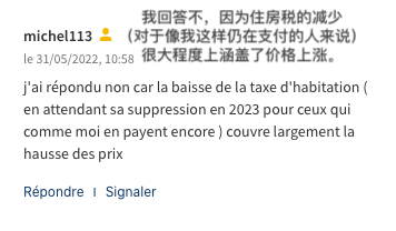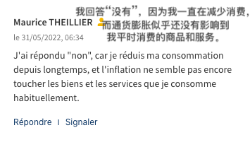 比如,网友“Maurice THEILLIER”的回答是“没有改变”,“因为我一直在减少消费,而通货膨胀似乎还没有影响到我平时消费的商品和服务。 ”