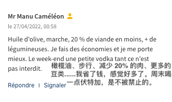 对此,法国市民也是非常无奈了。网友“Mr Manu Caméléon”留言表示:“橄榄油、步行、减少20%的肉、更多的豆类......我省了钱,感觉好多了。周末喝一点伏特加,是不被禁止的。”