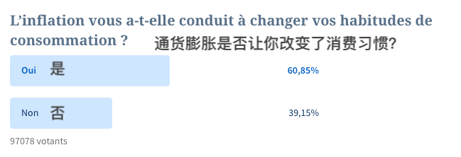 法国费加罗报(LeFigaro)近日发起了一项调查,问题是“通货膨胀是否让你改变了消费习惯?”