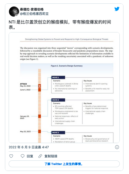 “NTI 是比尔盖茨创立的猴痘模拟,带有猴痘爆发的时间表。 ”