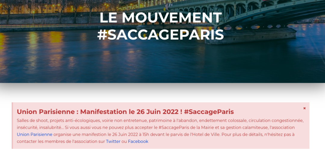 对此,巴黎联盟协会将于2022年6月26日下午3点在市政府(Hôtel de Ville)前组织一次示威。“召集令”中写道:破坏生态、道路失修、交通拥挤、不安全、不卫生...... 如果你也不能再容忍市政厅灾难性的管理,如果你也不想看到巴黎成为垃圾场,请加入我们!