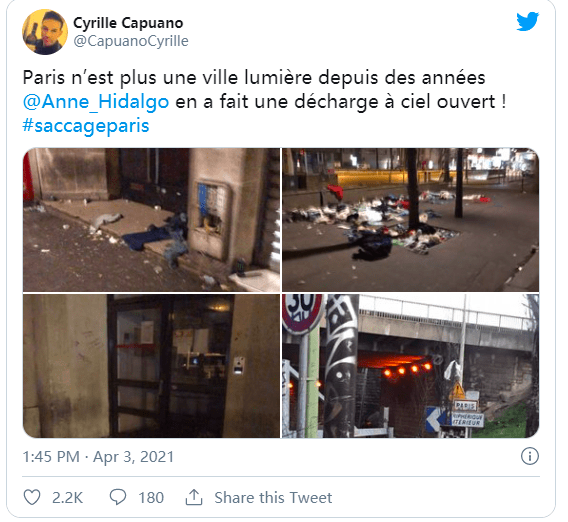 所有这些市民,在发出自己声音的同时,都不约而同地在自己的推文中加上了#SaccageParis的标签,也就是“垃圾场巴黎”。这是从2021年3月开始在推特上出现的标签,引起了广泛的共鸣和转发。