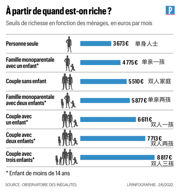 2022年版的《法国富人报告》中将富人的门槛如此设定: