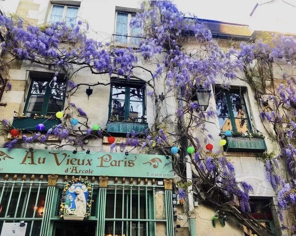 这家餐厅因为有梦幻的紫花攀藤外墙而荣登巴黎网红餐厅榜单,仿若从童话世界中出现的餐厅就坐落在圣母院旁边的巷子里。