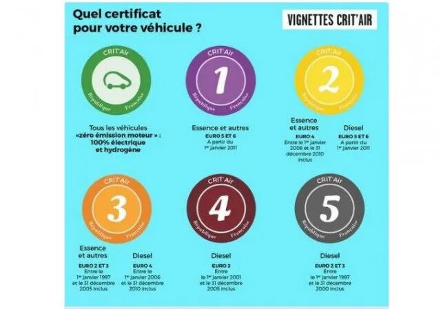 起初,一些大城市的省份会检查你的爱车是否贴有Crit'Air,比如:巴黎、格勒诺布尔、里尔、波尔多、雷恩、斯特拉斯堡、图卢兹和马赛等城市都必须贴上Crit'Air贴纸。但如今越来越多的城镇也需要这些证明。在某些城市,3、4 、5级排放标准的车辆会被禁止通行。