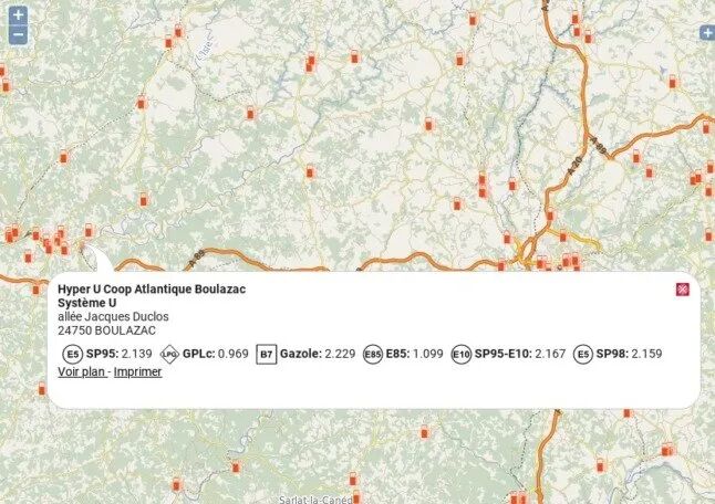 一般来说,高速公路上加油站的汽油价格最高,所以去城里加油会更省钱。不久前,法国政府推出了一个动态的加油站地图(https://www.prix-carburants.gouv.fr/),上面列出了全国各地加油站的当前油价。