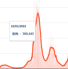 全程中,最高峰值我们放大来看一下,出现在2022年1月,日增超过了36万: