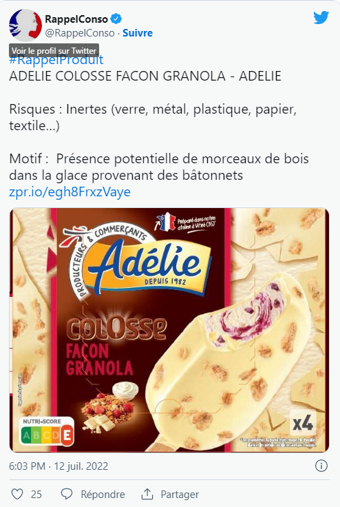 Rappel Conso最近宣布有几款冰淇淋必须被召回,理由是冰淇淋棍子的木屑可能混入了冰淇淋之中,吃下去会有危险!