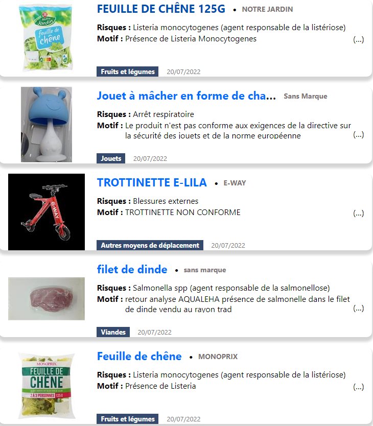先给不熟悉RappelConso的朋友们来科普下:RappelConso是消费者关于产品、食品或动物饲料召回的公共信息网站。
