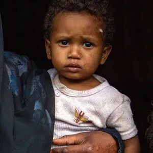 在马达加斯加,勉强果腹的5岁的女孩