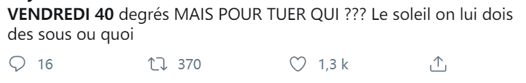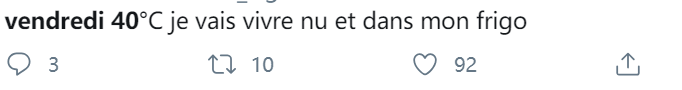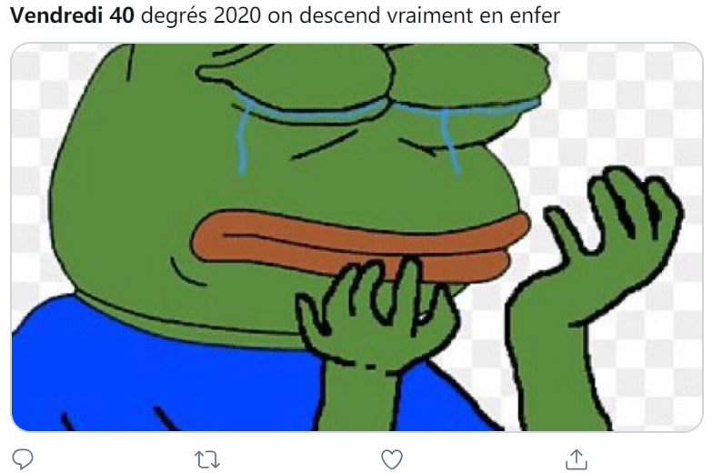 得知这一消息之后,网友们立刻把“Vendredi40”(周五40度)刷上了法国推特的热搜,推特立刻变成了一片哀嚎的惨烈战场。