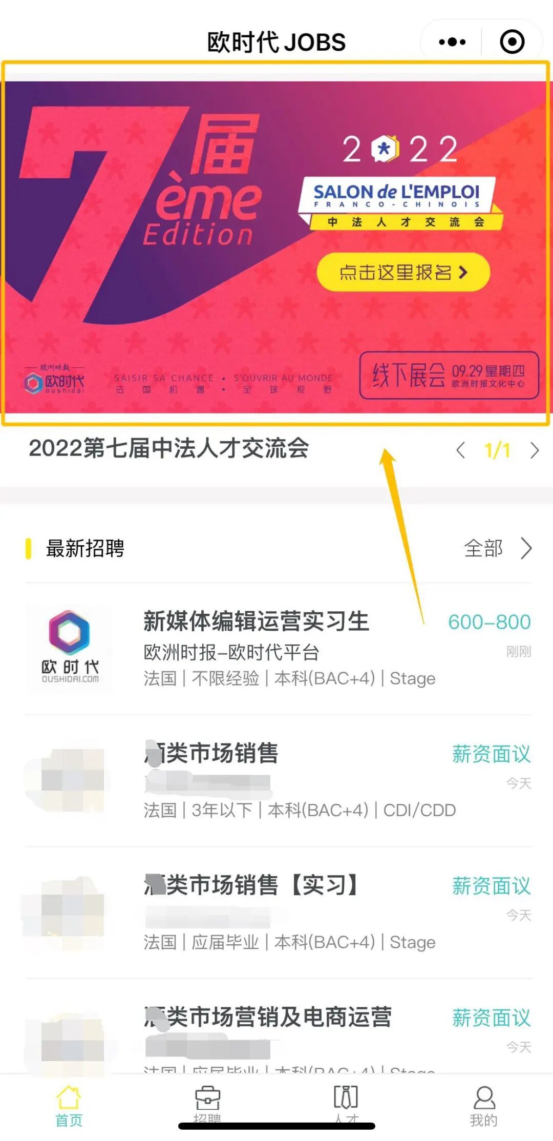 首页顶部点击查看招聘活动