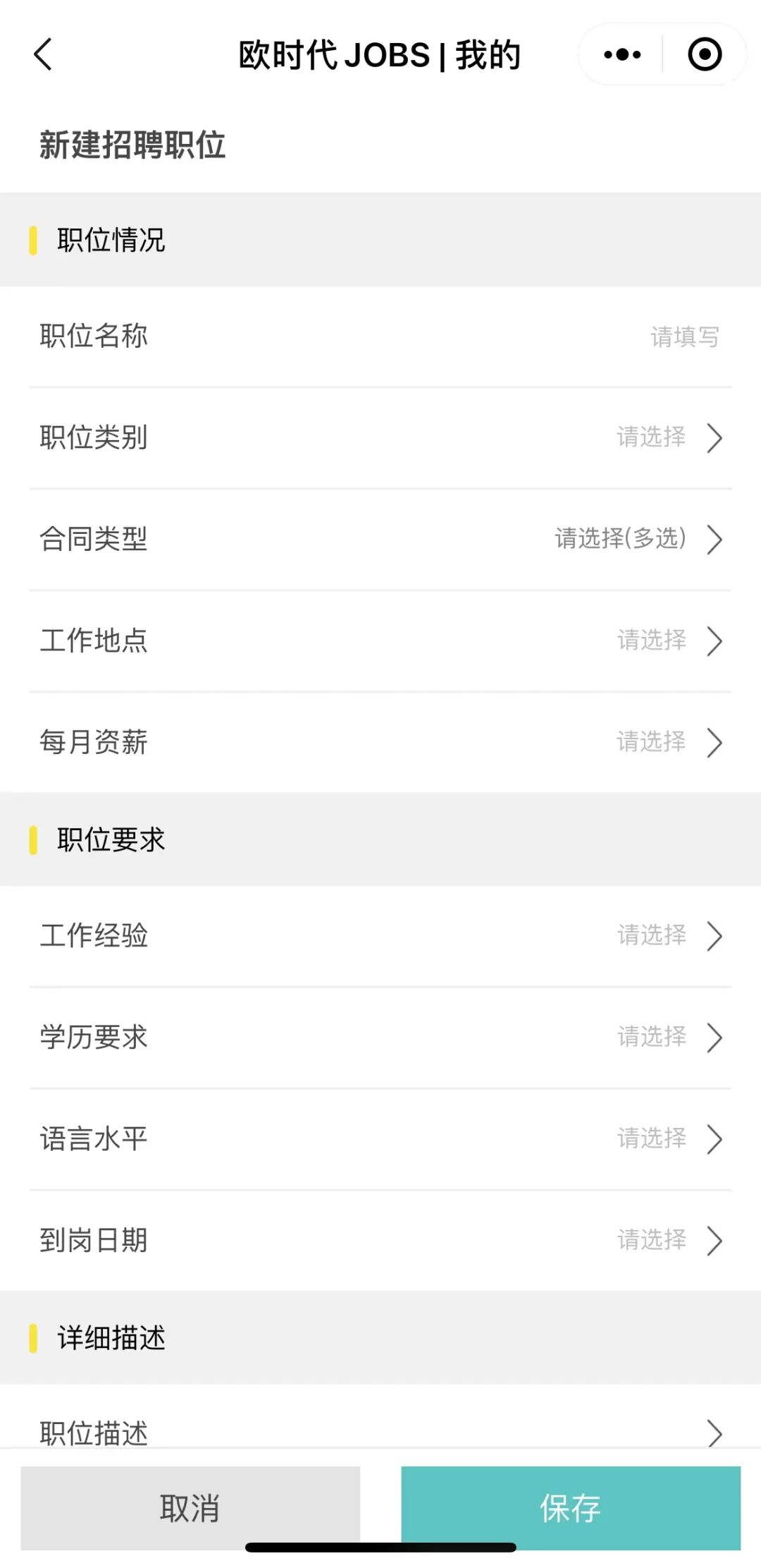 “新建招聘职位”界面