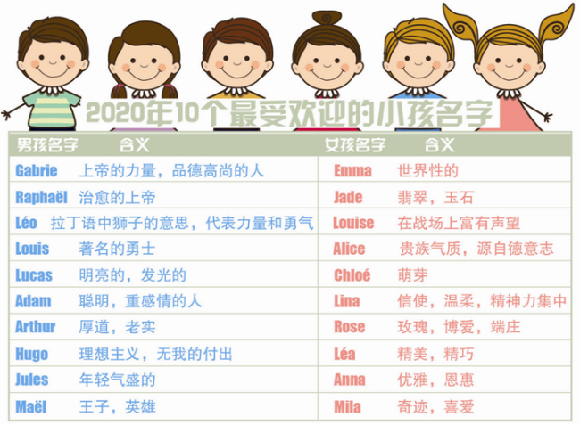 从榜单上看,这些名字寓意美好、与众不同,并且典雅悦耳!那么让我们来看看法国人是怎么给宝宝取名字的。