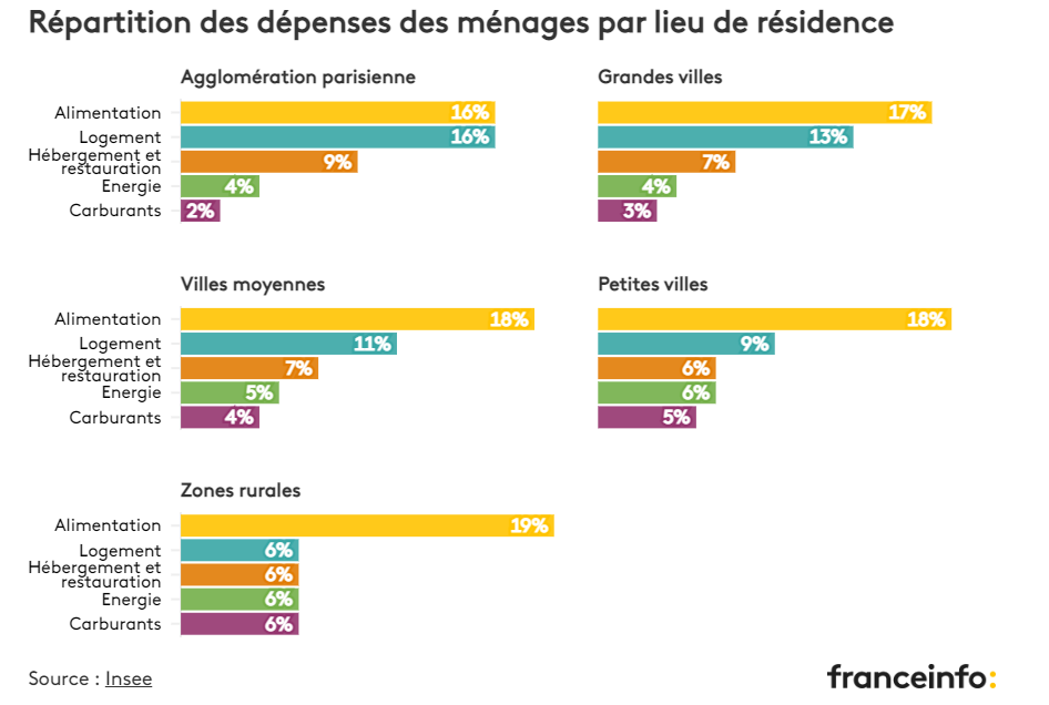 在影响家庭通胀风险的因素中,居住地也是决定性的因素——农村地区的家庭在燃料和能源花费上,远高于法国家庭的平均水平。