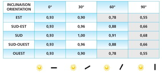 在法国,安装电池板最好的朝向是完全向南,最佳倾斜度是 30°,以此获得最高电力年产量。