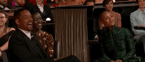 在他出手之前,你看看他妻子Jada的尴尬和不自在:
