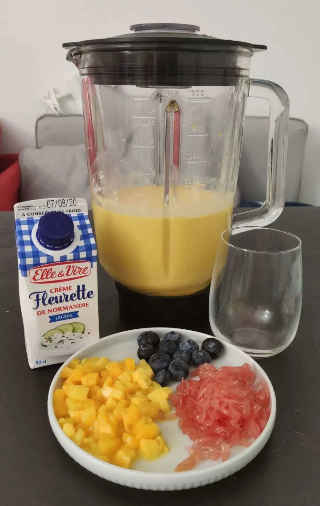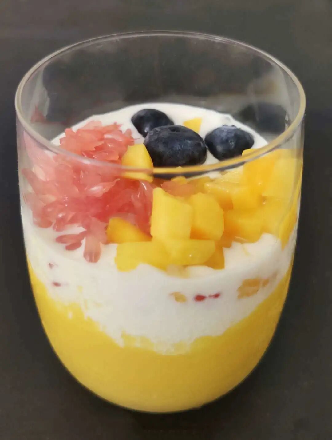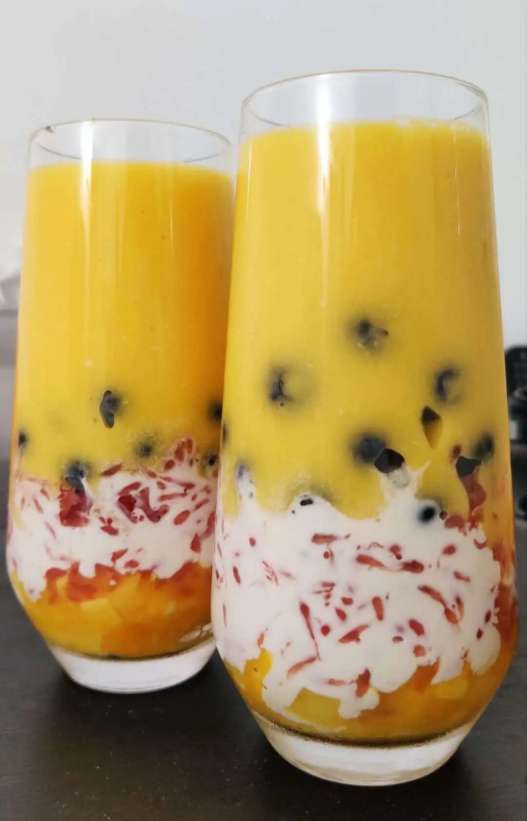简易版杨枝甘露没有放西米,不过同样非常好吃~制作过程中还省去了开火的烦恼,非常适合解暑降温。根据自己的口味,还可以稍作改良,加一点蓝莓、树莓点缀其中,让自制的法版杨枝甘露也带上一抹法国特色~