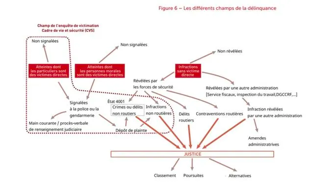 2019年发表在法律评论AJ Pénal上的一张图表,可以在内政部的网站上找到,它让人们更好地了解法国的犯罪领域及其处理方式。