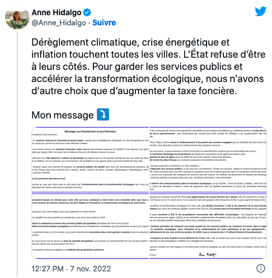 https://www.leparisien.fr/paris-75/taxe-fonciere-a-paris-anne-hidalgo-augmente-le-taux-dimposition-de-plus-de-50-07-11-2022-WJ6KK7NSVVEHXOTWCVL4KBKT6I.php?ts=1667925991367