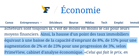 诚然,根据Meilleurs Agents的数据,巴黎有些区的房价下跌了,在某些大城市,比如南特、斯特拉斯堡、里昂、波尔多或图卢兹,等等,也是如此,但这种下降仍然非常轻微,无法与信贷利率的上升相提并论。