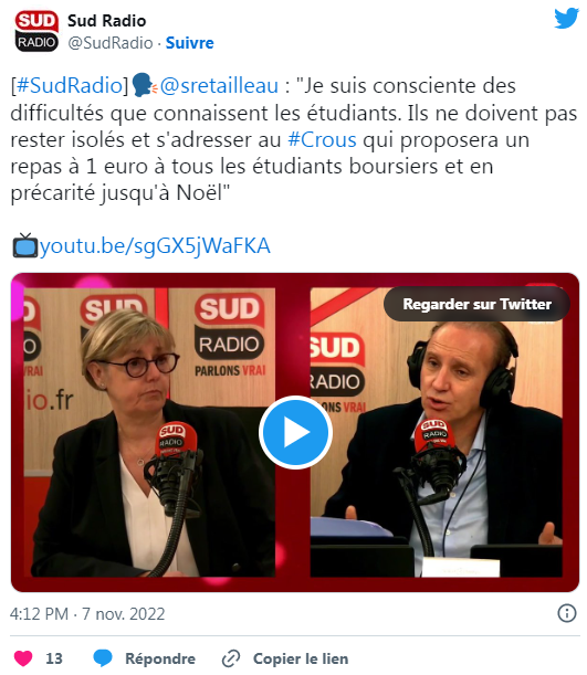当被问及学生抱怨的某些Crous的膳食质量下降时,部长保证“不存在偷工减料的问题”。
