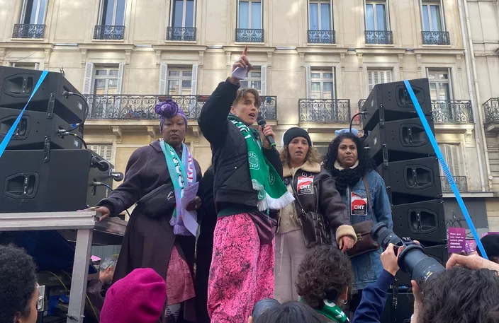 “当每年有 225,000 名妇女成为配偶暴力的受害者时,当三分之一的女性成为工作中性骚扰的受害者时,当 670 万法国人遭受乱伦暴力时,当女性患者在妇科办公室或产科病房被强奸时,我们别无选择!”