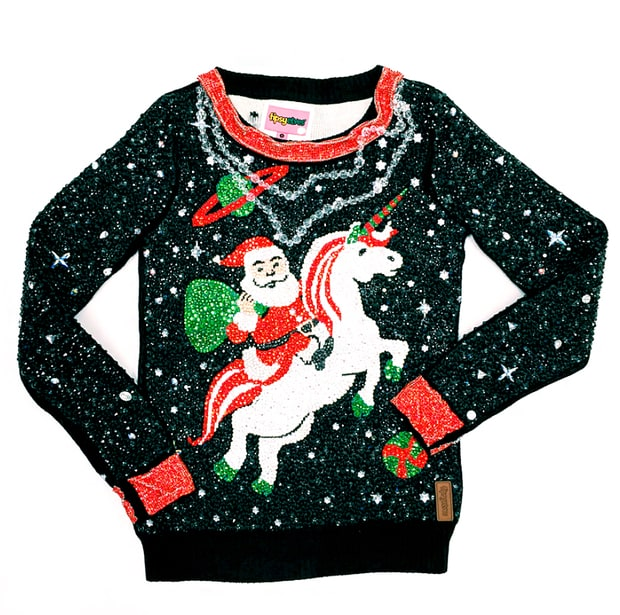 甚至美国品牌Tipsy Elves和施华洛世奇(Swarovski)还曾经联手打造过一件号称“全世界最贵的圣诞丑毛衣”。这件镶嵌了2万5千颗Swarovski水晶的毛衣,总价值高达3万美元。