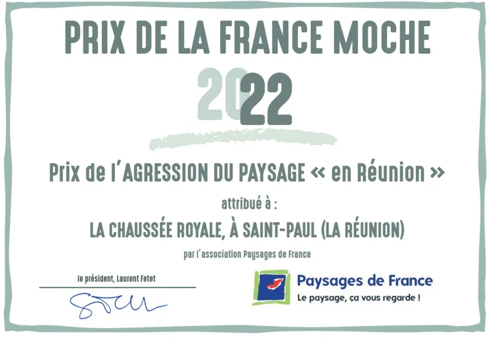 Paysages协会曾经通知留尼汪省省长:“一旦广告、标志或预先标示不正常,政府当局应立刻发出命令,命令下达五天内必须移除或使相关广告、标志符合《环境法》规定。”