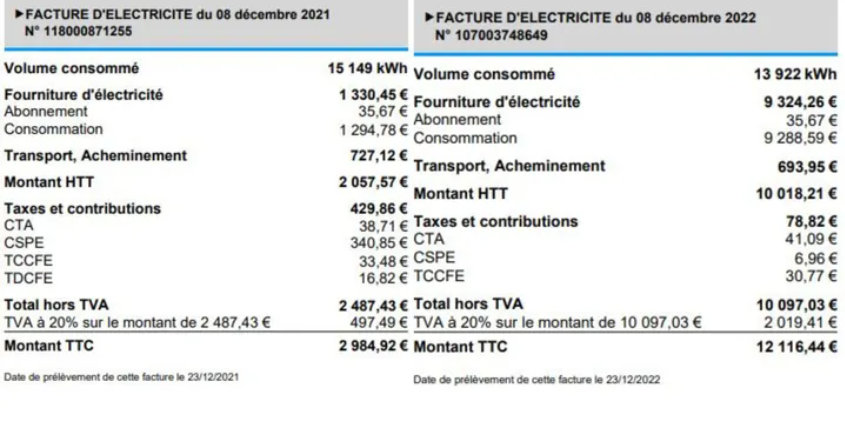 12月份巴黎面包师的账单总额为 12116.44 欧元,而去年同期为 2984.92 欧元。图源:FranceInfo