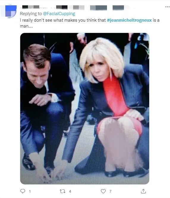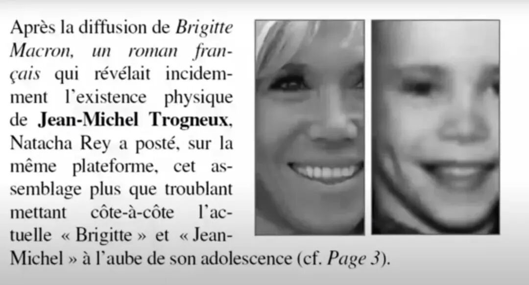 先有法国记者Natacha Rey,撰写了一篇揭露第一夫人变性人身份的文章:通过理论“分析” 一张Trogneux(布丽吉特的本姓)家族的全家福,因为在家族合照中很难见到小时候的布丽吉特,唯一和布丽吉特年龄相仿的便是一个小男孩让·米歇尔。
