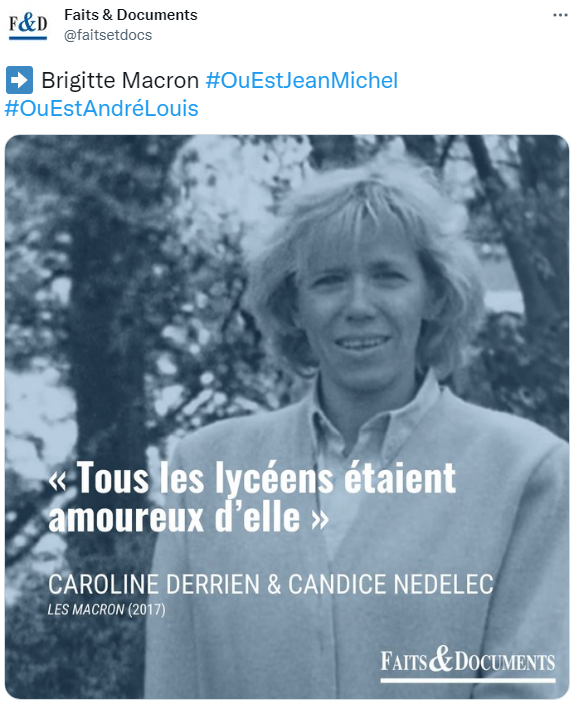 法兰西共和国舆论史上最著名的“阴谋论”最近又出现了新的苗头,法国“第一夫人”又双叒叕被爆出新料:布丽吉特·马克龙 (Brigitte Macron) 儿女不是亲生的!她生不了孩子!