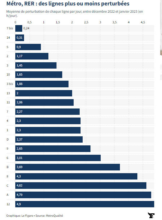 据法国一名工程师统计,整个法兰西岛地铁网络总共受到1425小时的扰乱!在此期间,记录到的延误总持续时间令人抓狂,有3条线中断超过100小时,地铁12号线甚至超过200小时。