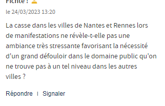 示威活动期间南特和雷恩市的破损是否揭示了一种非常紧张的气氛,而这有利于在公共领域大力缓解压力。这在其他城市应该找不到吧?