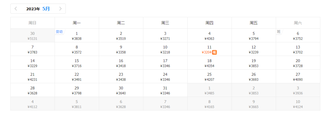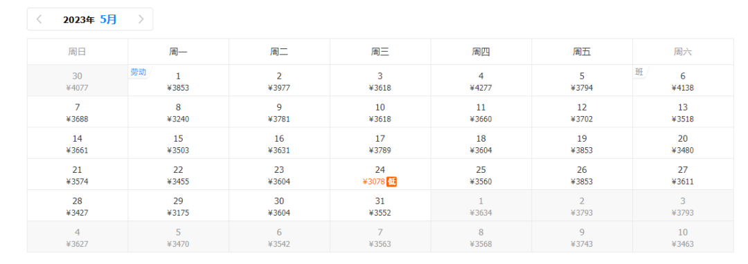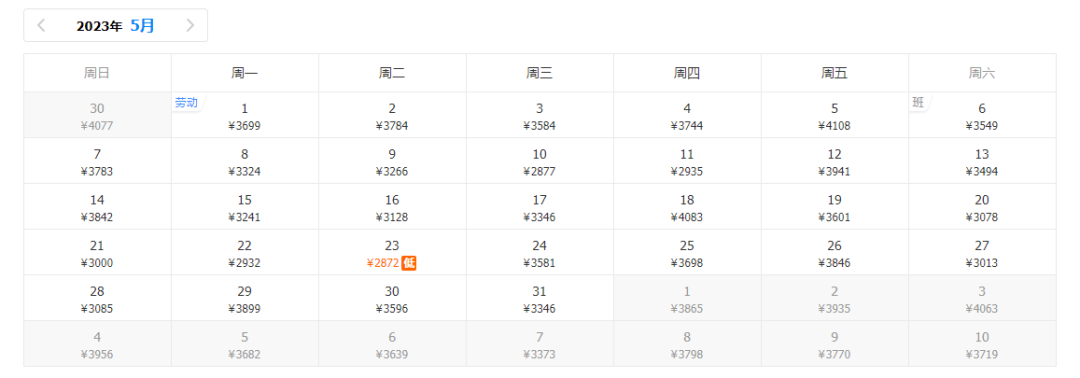 从现在到七月,综合来看票价最低的就是五月份啦!