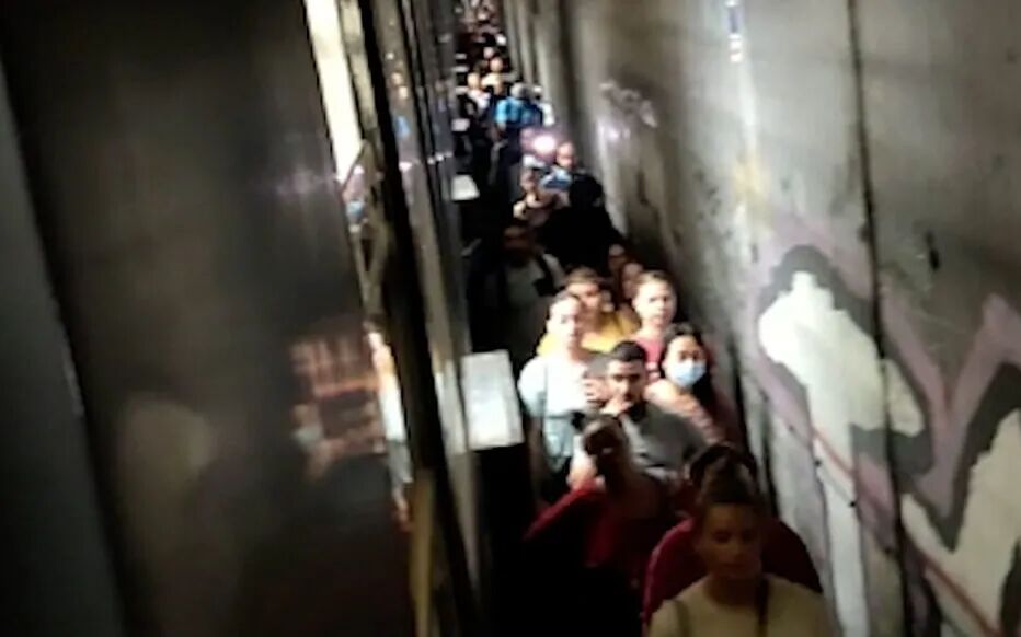 “我们在隧道中被封锁了1小时30分。在拥挤的车厢里,气温35度,这里还有小孩。一系列的电气事故,有一些是乘客强行开门造成的。现在,乘客们开始自我监督。”
