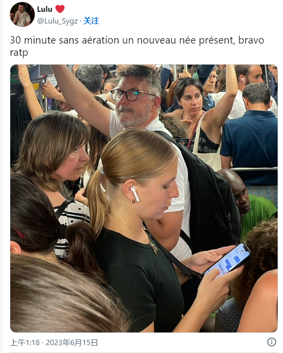 “30分钟的窒息感……谢谢巴黎地铁送给我们的礼物。”