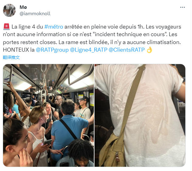 这不,周三(14日)晚高峰期间的地铁4号线又双叒“瘫”了!乘客们被困在40度高温的车厢内将近2小时的恐怖遭遇,也让RATP被骂上热搜!