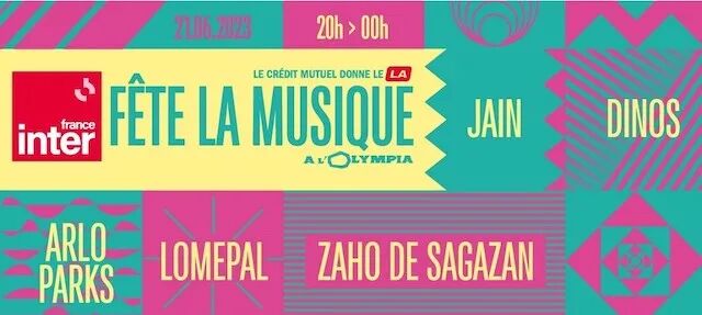 法国电台France Inter将再次在奥林匹亚剧场(巴黎9区)举办音乐节,为观众提供五场免费音乐会。预计将有来自Sagazan的歌手Zaho;演唱《Makeba》的歌手Jain;还有来自英国的Arlo Parks;以及法国说唱界的两位重量级人物Dinos和Lomepal。