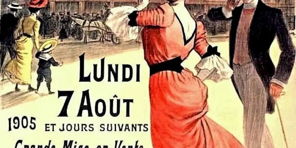 1905 年,巴约讷春天百货夏季拍卖会的广告海报。
