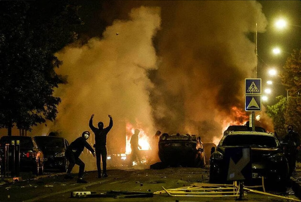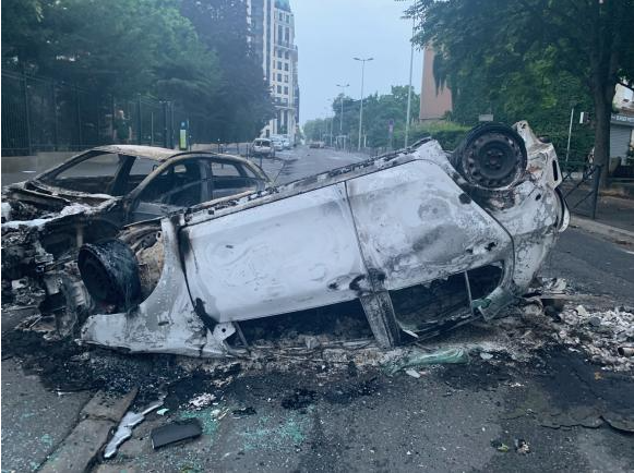 就在这件“荒唐”的“警察枪杀17岁未成年”事情发生之后,全法立即开始了一片骚动和抗议,从6月28日星期三至6月29日星期四,暴力事件在法国各地持续了整整两夜,巴黎地区尤其成为重灾区。