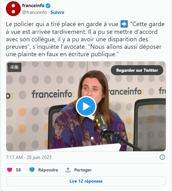 检察官表示:“根据调查情况和收集的信息,检方认为此警察的行为不符合“警方可合法使用枪支”的情况。因此,在警方的拘留期结束后,涉案警官将于星期四被带到两名预审法官面前。”