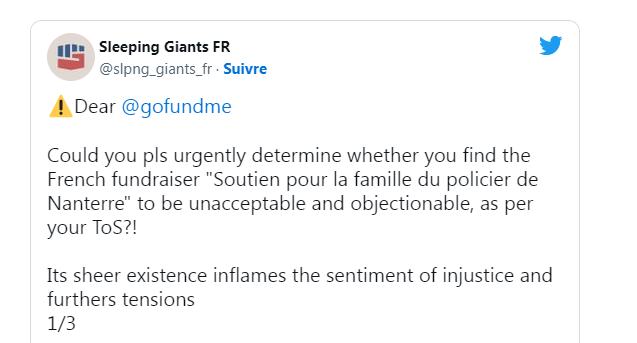 在此之后,议员梅兰妮·沃格尔 (Mélanie Vogel)在 Twitter 上向 GoFundMe 喊出对峙的“口号”:“向暴力受害者传达这种信息是让人心寒的,要赶紧关闭它!”