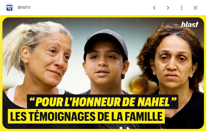 纳赫尔的母亲穆尼亚•M(Mounia M)此前面对法国媒体时坦言:“他(警察)看到一个看起来像阿拉伯人的小孩,就想夺走他的生命。”