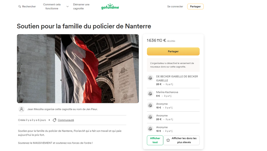 https://www.liberation.fr/societe/police-justice/mort-de-nahel-deux-cagnottes-de-soutien-lancees-et-pas-mal-de-questions-sur-leur-legalite-20230702_ZNHR7GZOBVBHDFQWXOZYPJ34N4/