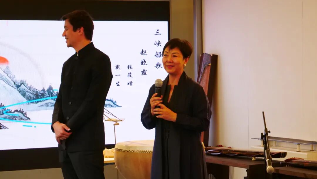 Jean François CHUET先生,在古琴合奏《渔樵问答》的音乐中,缓缓地,用法语给大家朗诵了三首中国古诗词。