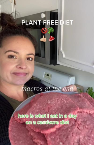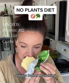 “你只要吃很多的红肉和黄油片,也能像我一样蹭蹭掉秤!” 减肥博主@Itscourtneyluna正在向观众们展示她今天的早、中、晚饭——牛排和黄油。在Tiktok上,她的数百个视频已经获得了 240 万个“赞”。