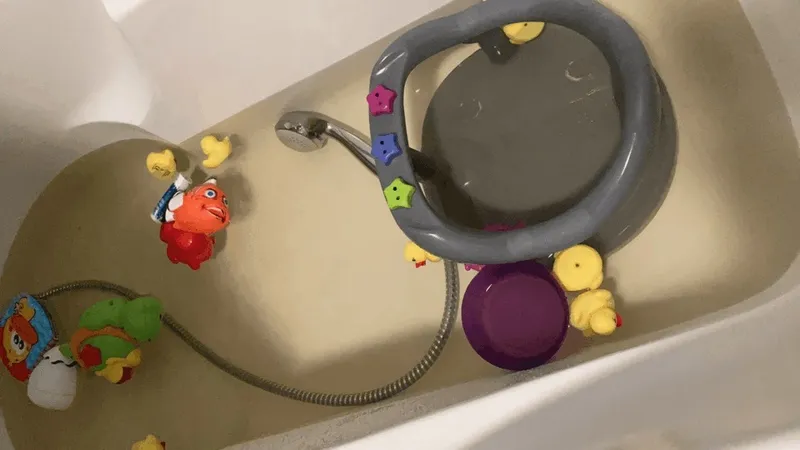 “昨天晚上我也遇到了这样的事。我发现用自来水洗的衣服变成了黄色,这太恶心了!”